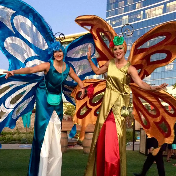 Daffodils are available on roller skates, short stilts, and tall stilts.